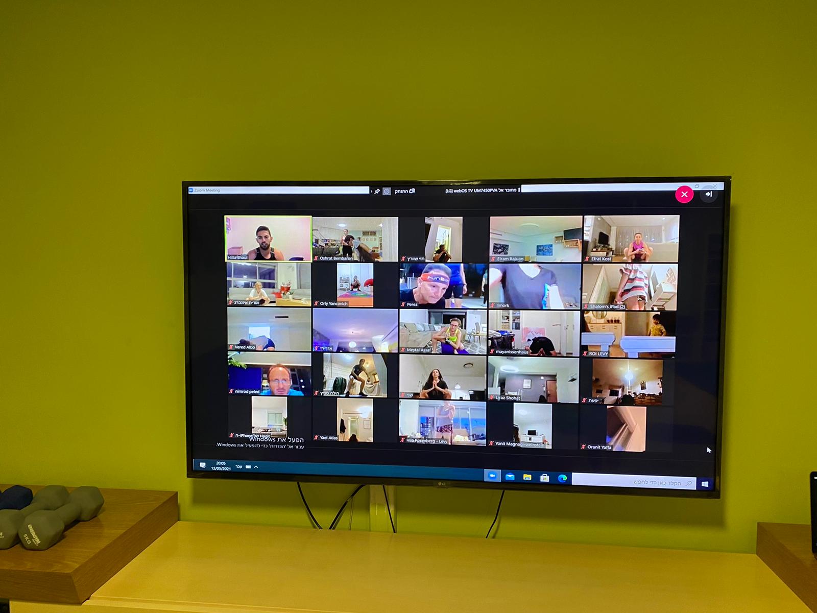 האימונים עוברים דרך אפליקציית Zoom - מתחברים, ודרך המסך מתאמנים.